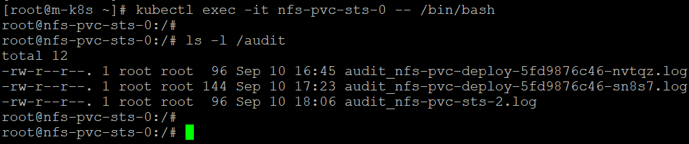 exec로 파드에 접속한후 접속한 파드의 정보가 추가됐는지 확인합니다.