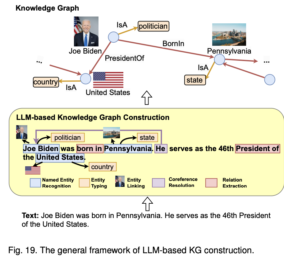 예시: "Joe Biden" 노드와 "Pennsylvania" 노드를 BornIn 관계로 연결, "United States" 노드와 PresidentOf 관계 형성.