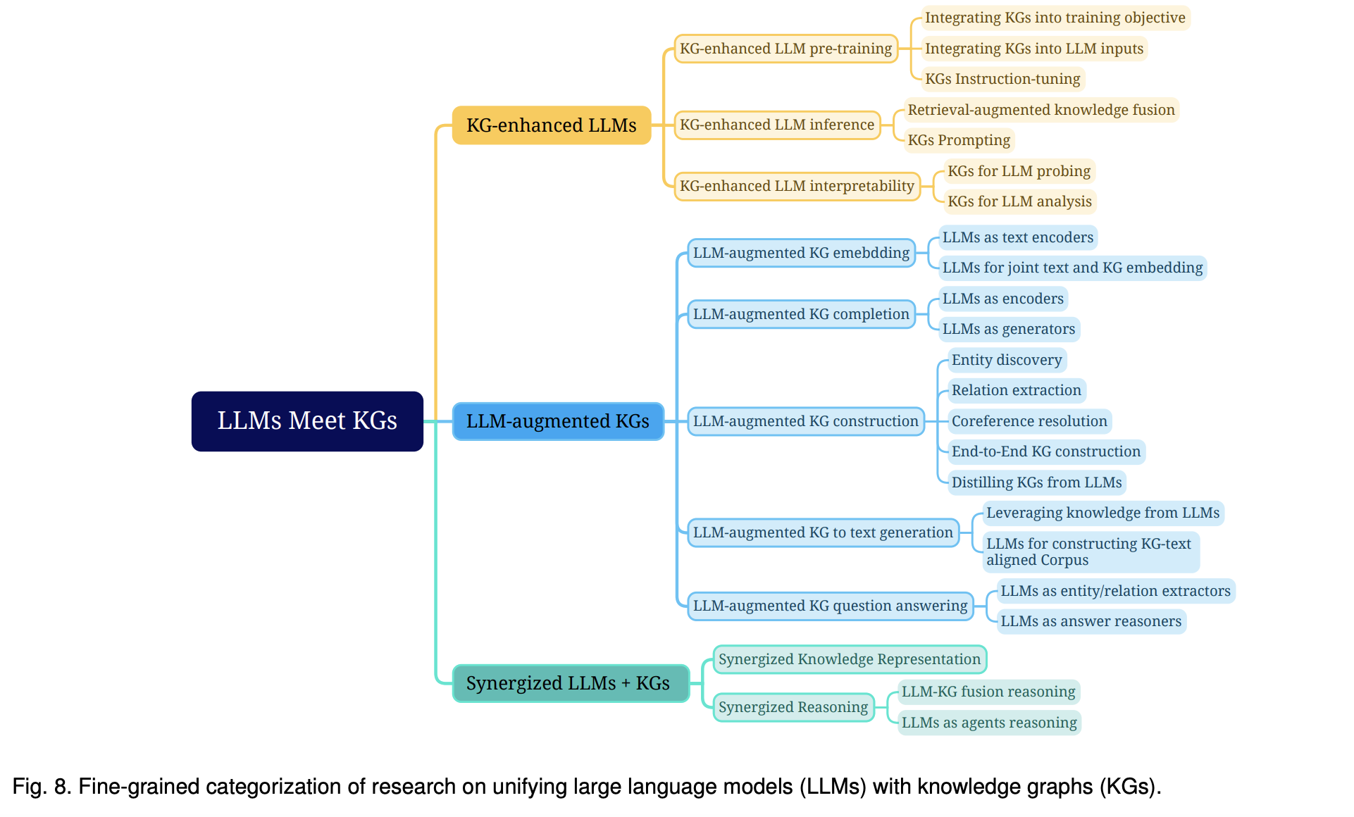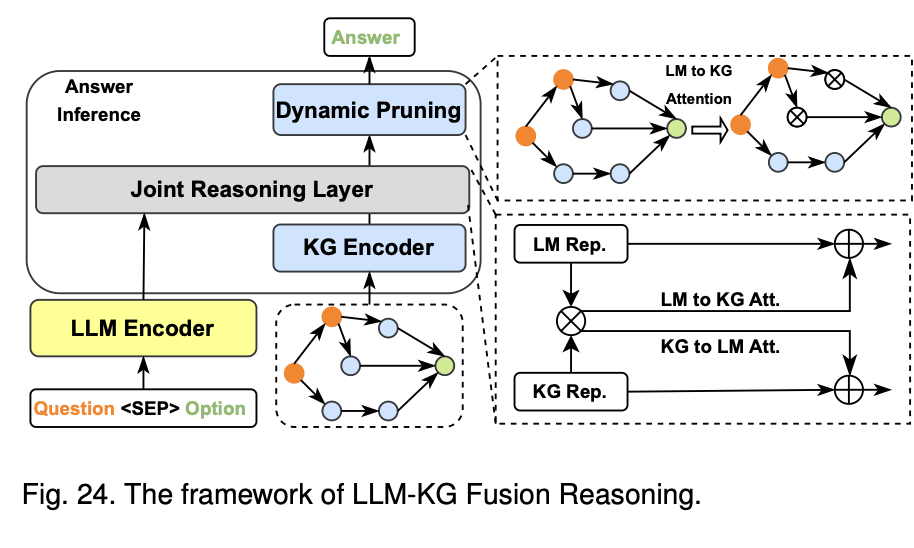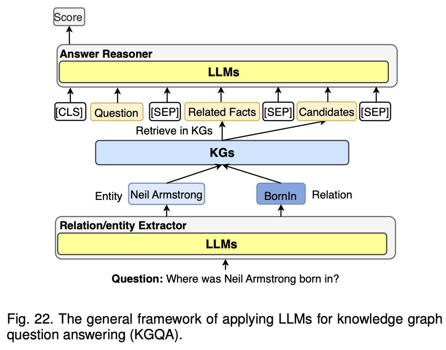 LLM만 활용하는 경우: LLM은 많은 지식을 비구조적으로 저장하고 있지만, 그 지식이 암묵적이기 때문에 어떤 정보가 사실인지, 그리고 어떤 추론 과정을 거치는지 명확하지 않음. 또한, KG와 같은 명시적 지식을 활용하지 않으면 환각 문제나 불완전한 추론이 발생할 수 있음