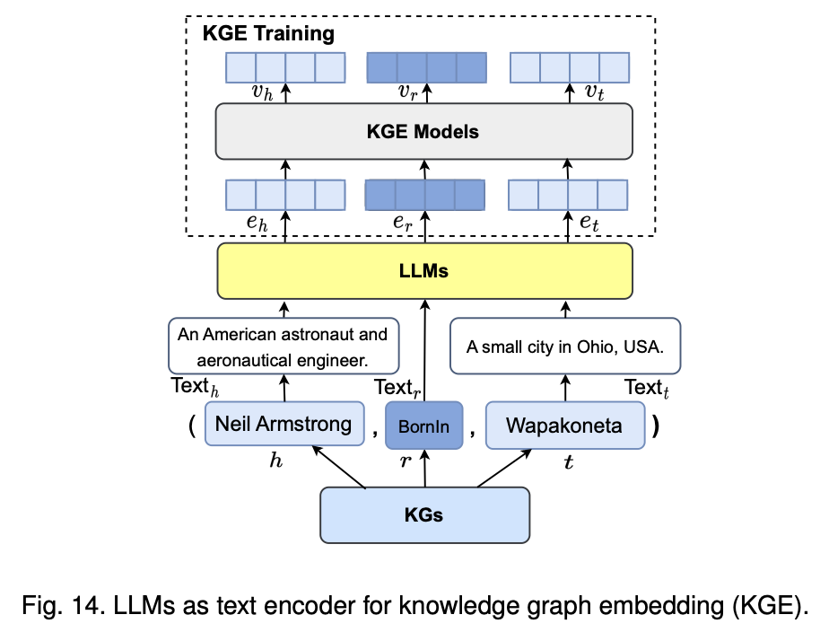 이 아키텍처는 텍스트 임베딩과 KG 임베딩을 통합하여 LLM이 지식 그래프의 구조적인 정보와 텍스트 정보를 동시에 학습할 수 있도록 설계되었음 따라서, LLM은 단순한 텍스트 기반 학습에 비해 더욱 정확한 엔티티와 관계를 학습하고 예측할 수 있게 됨