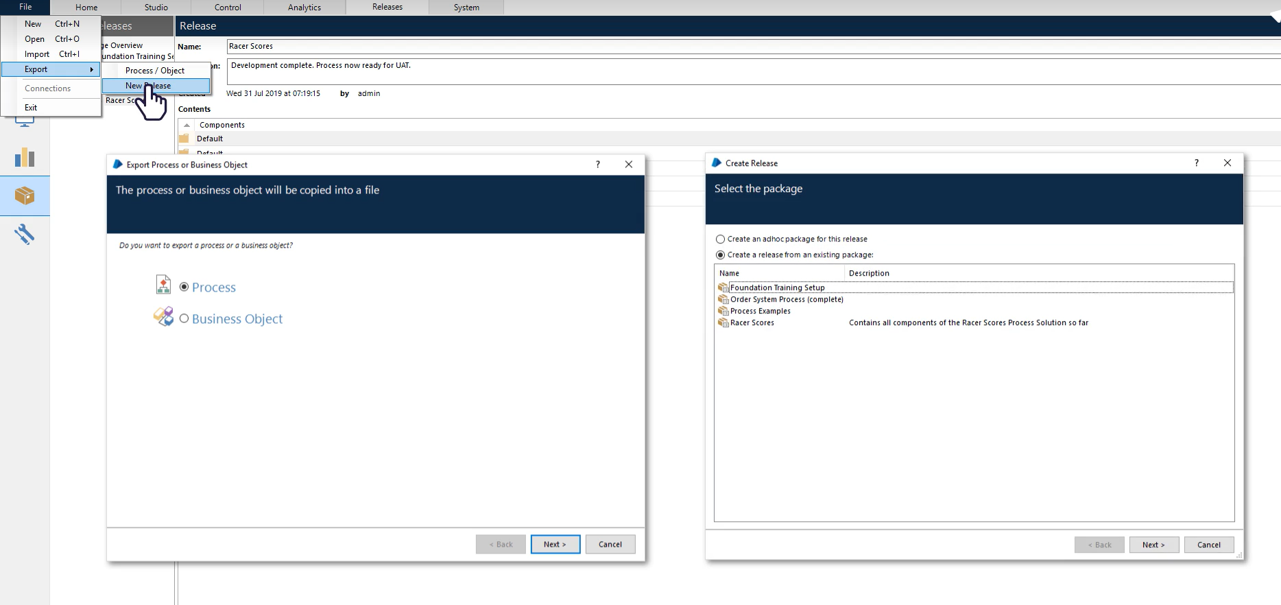 Process / Buisness Object또는 New Release를 선택할 수 있는 옵션이 있다.