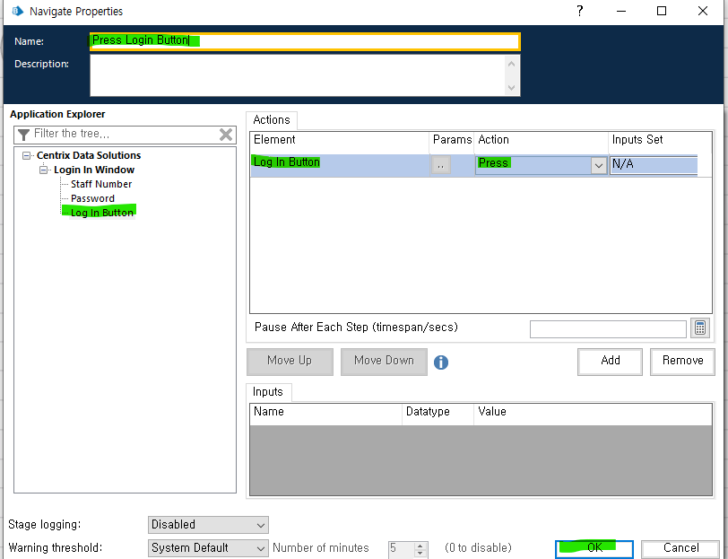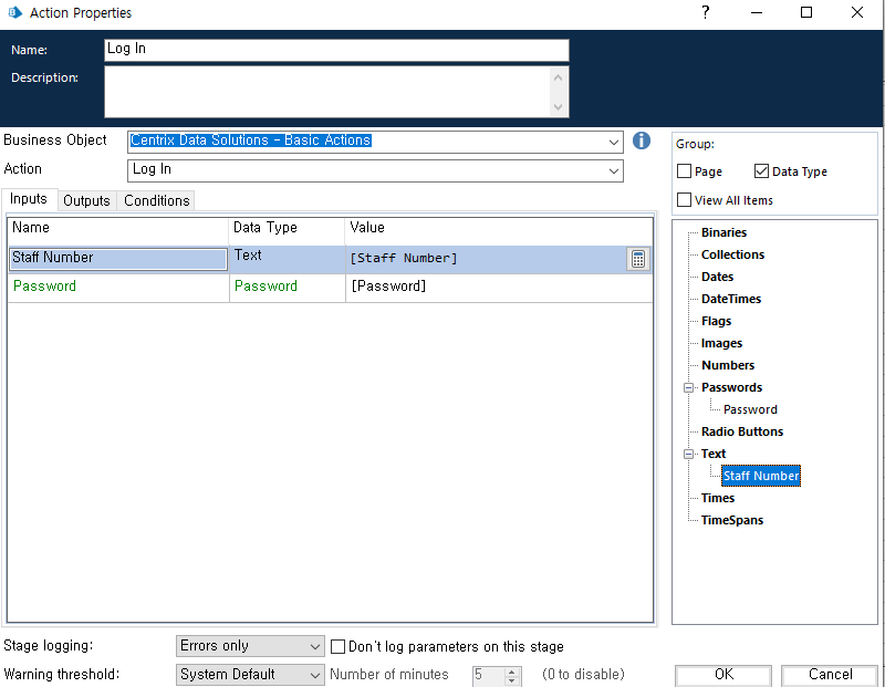 2.2 Login Action Stage 속성에 Input 값 추가