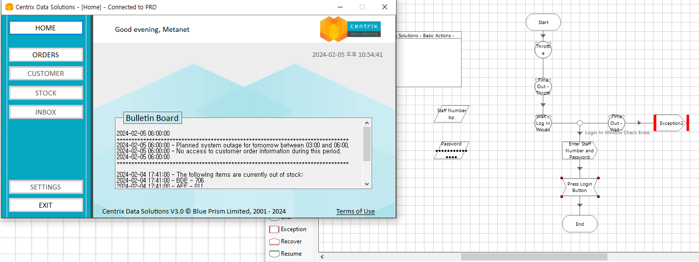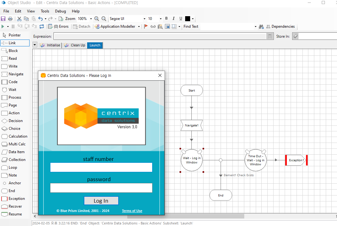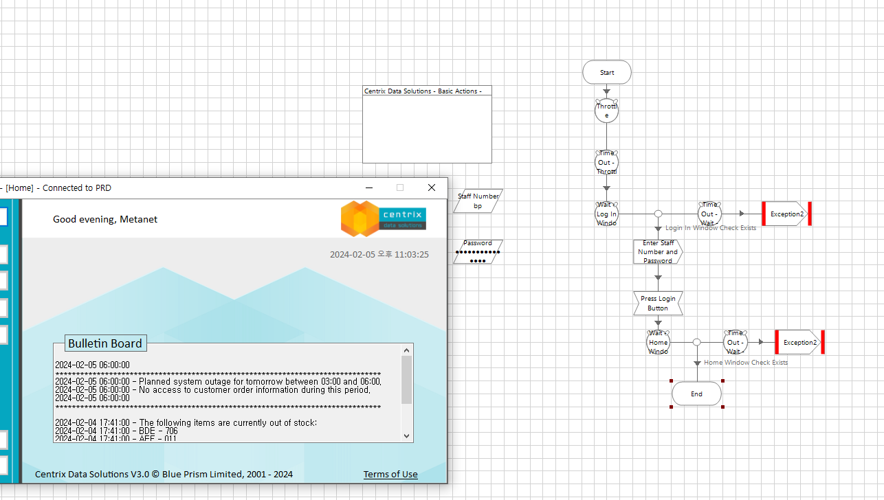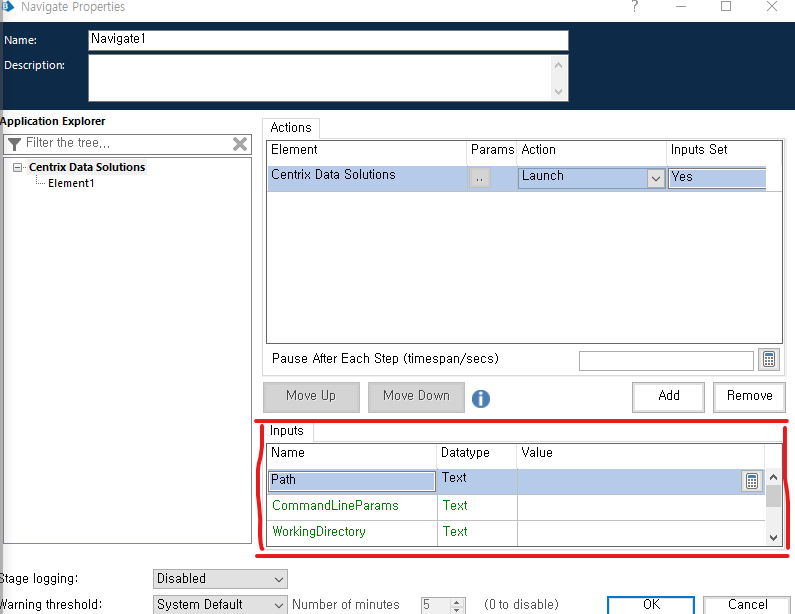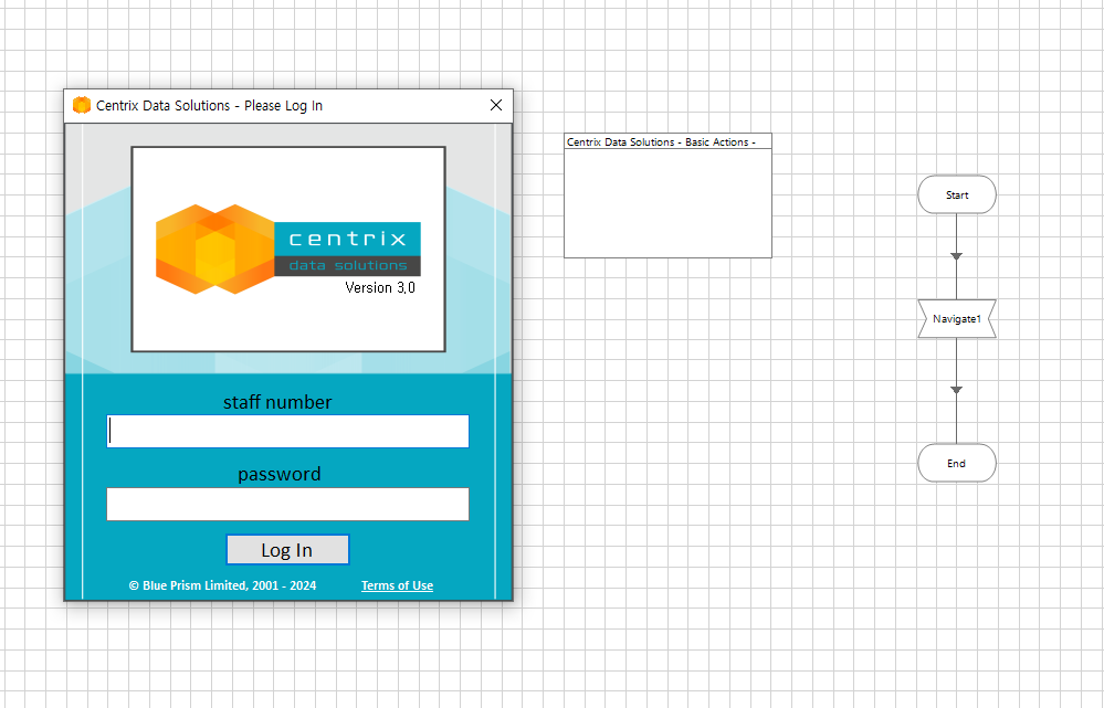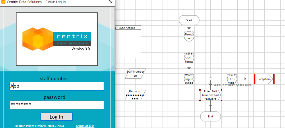 Path설정(C:drive\BluePrism\Traning\Applications\Windows\CentrixDataSolutions) >