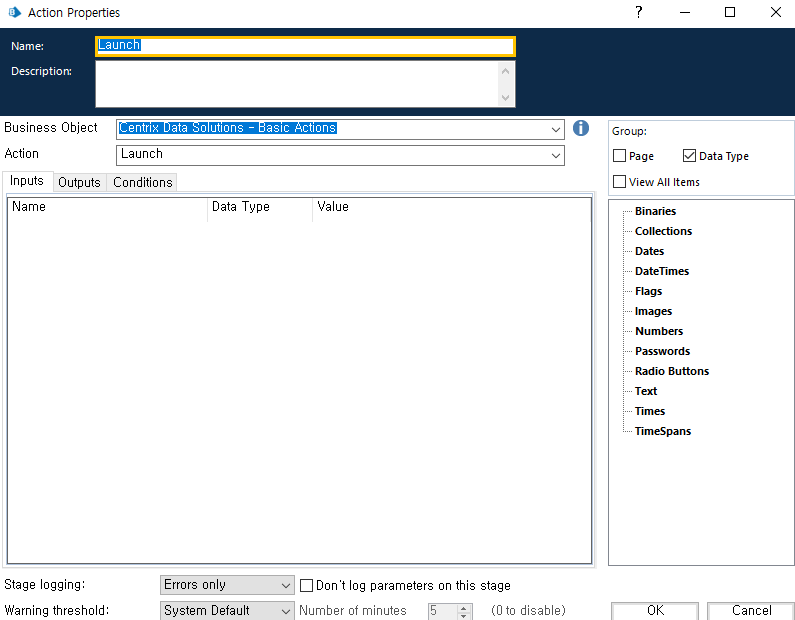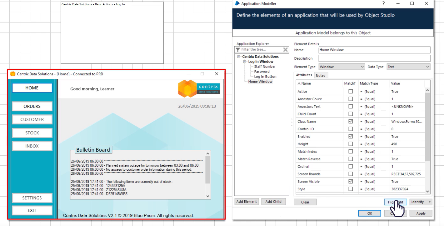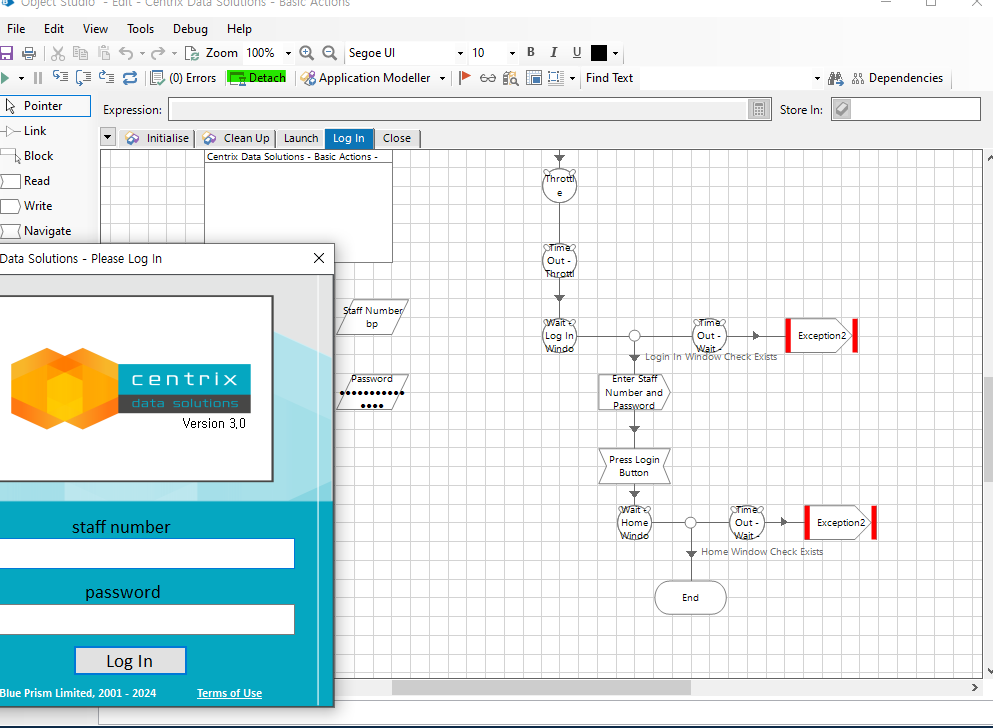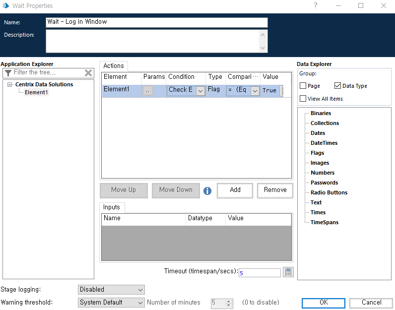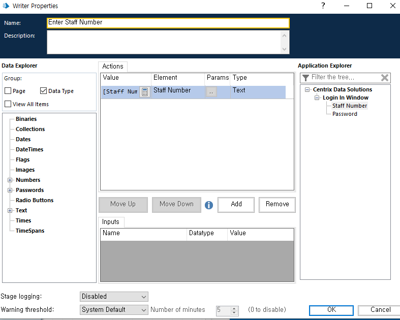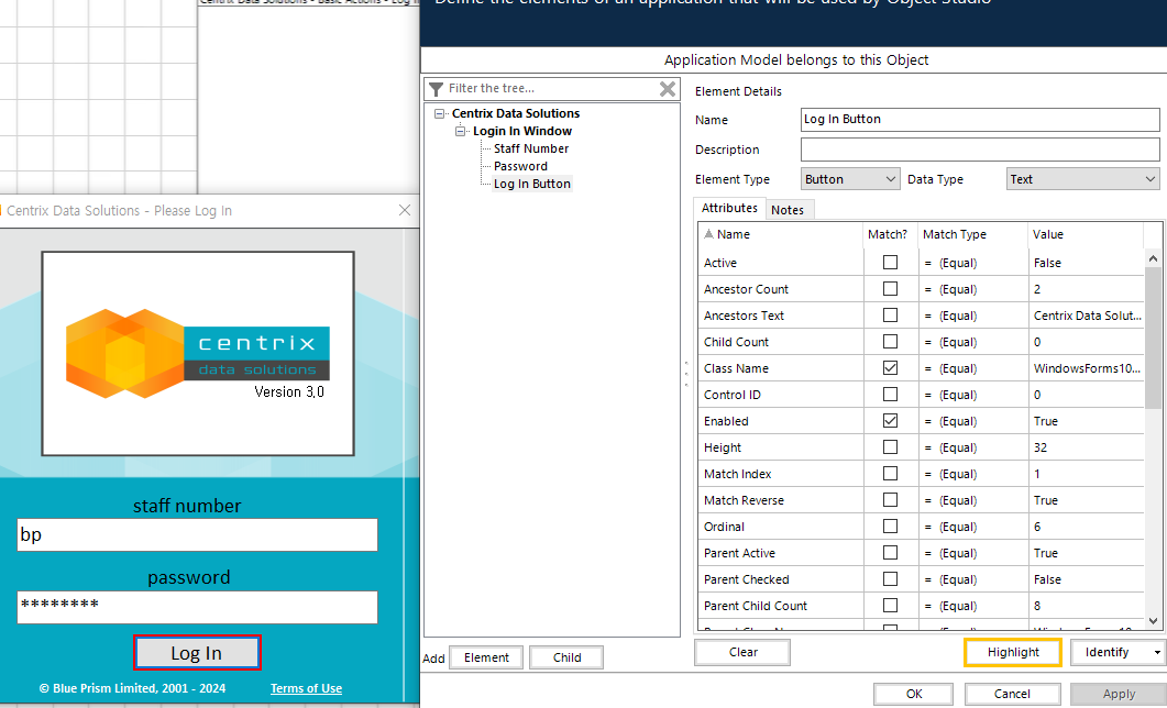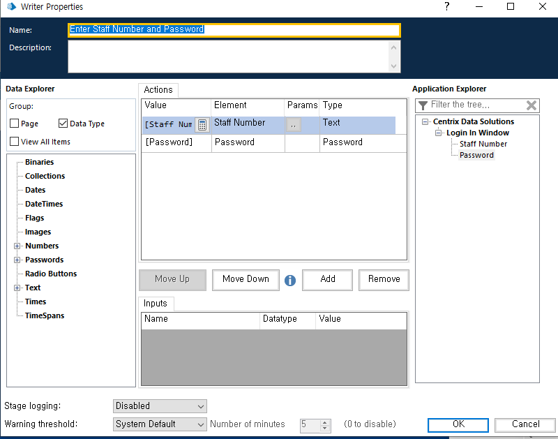 Path설정(C:drive\BluePrism\Traning\Applications\Windows\CentrixDataSolutions) >