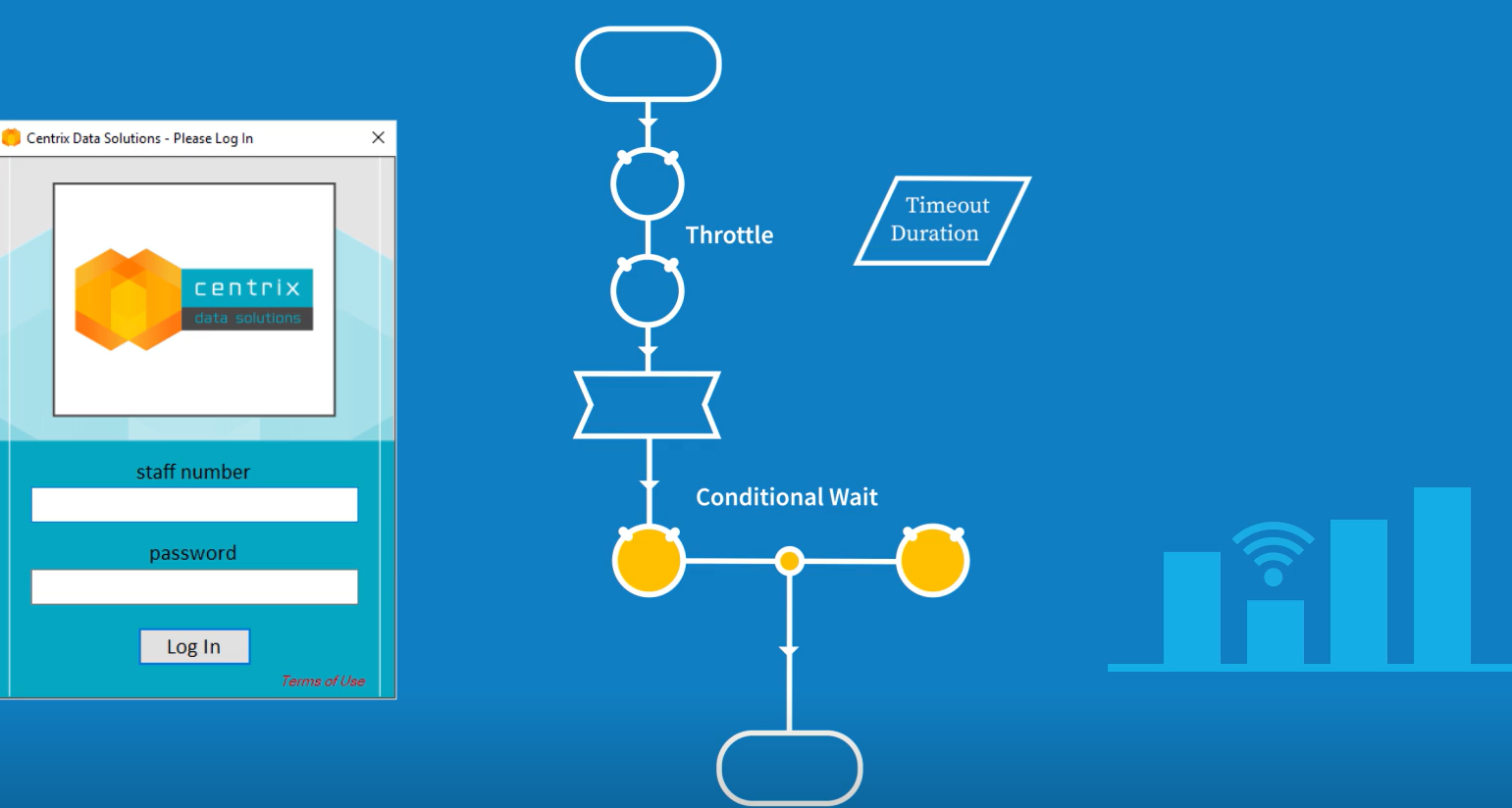 대기 조건은 지정된 시간 내에 대기 조건이 충족되는지 여부에 따라 평가되고 플래그 값을 생성한다. 대기 스테이지에 다중 대기 조건을 적용할 수도 있다. 이는 응용 프로그램에서 여러 종류의 응답의 가능성이 있는 경우에 유용하다.