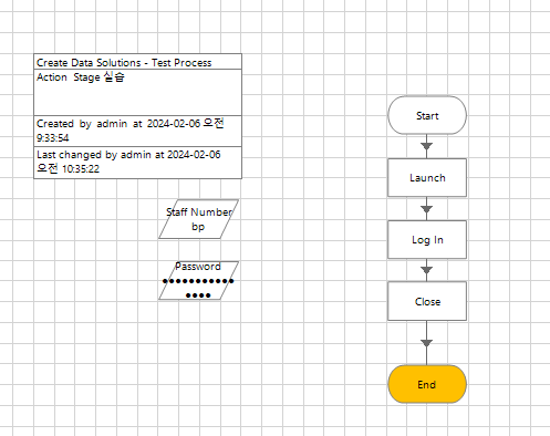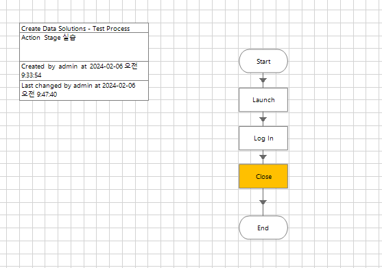 step 2.) 새 프로세스에 액션 스테이지를 추가하여 애플리케이션을 시작, 로그인, 닫기