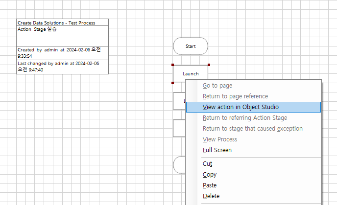작업을 편집하기 위해 돌아갈 경우 마우스 우클릭 View action In Object Studio 선택