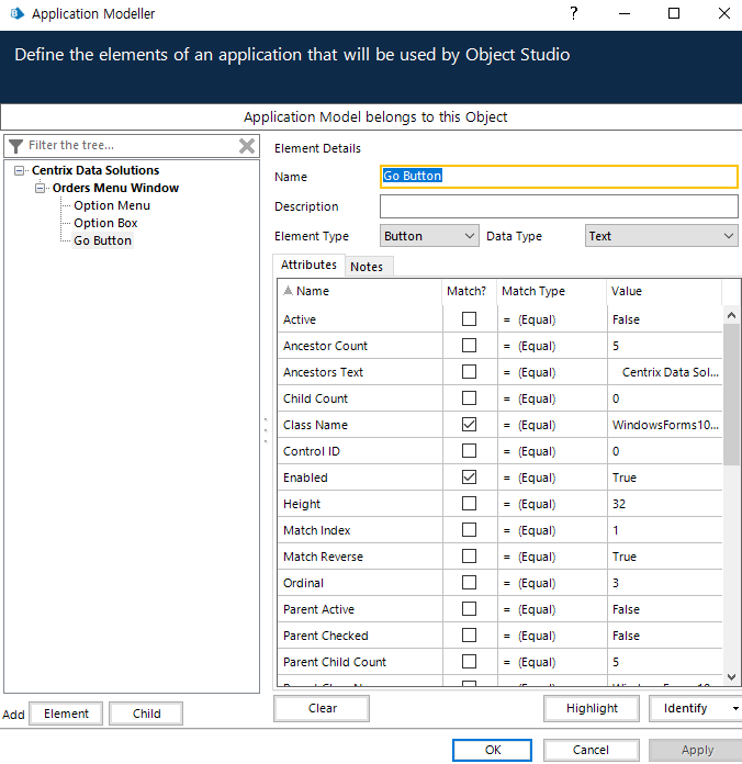 Window Text에 연결된 값이 비어있음 : 응용 프로그램 모델러가 필드에 텍스트가 없기 때문에 창 텍스트가 비어있는 조건에서만 이 요소를 인식할 수 았음을 의미한다.