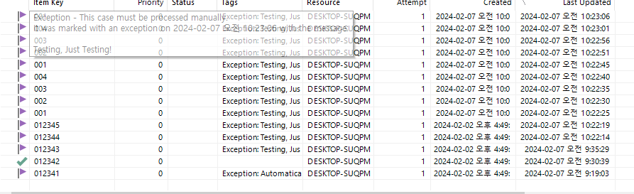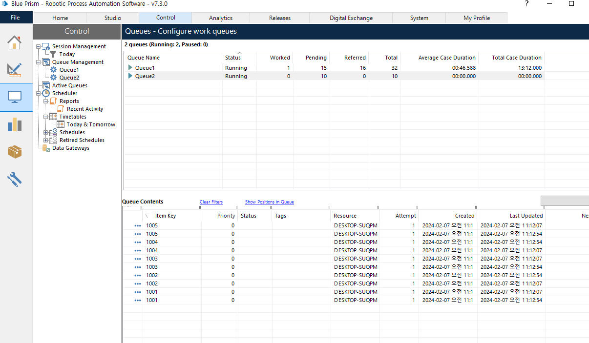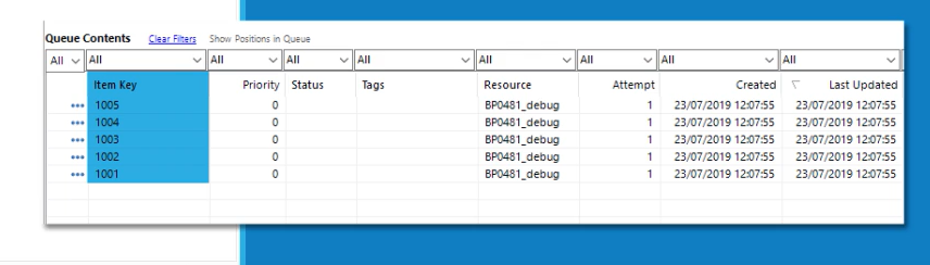 생성된 모든 새 항목은 모든 블루프리즘 프로세스에서 자유롭게 사용할 수 있으며 동일한 대기열에서 다음 항목으로 선택된다.