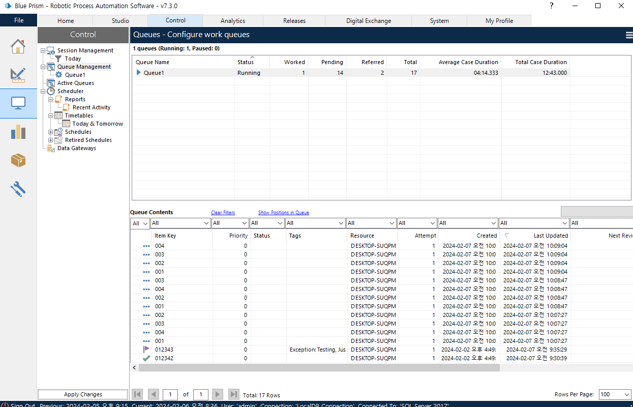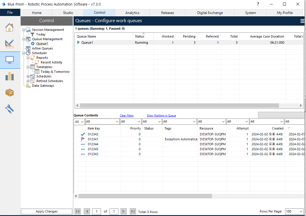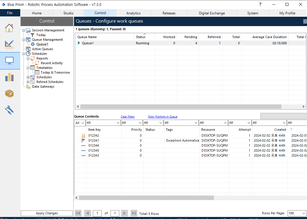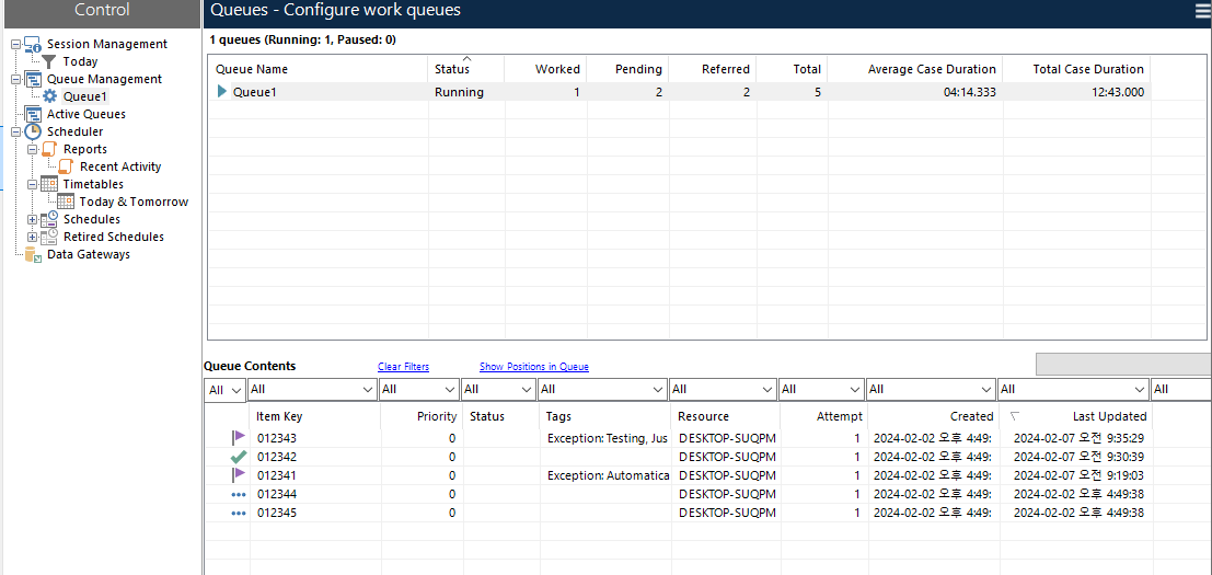 step3.) 제어실의 작업 대기열 영역 내에서 항목이 저장되고 기록되는 방법 살펴보기.