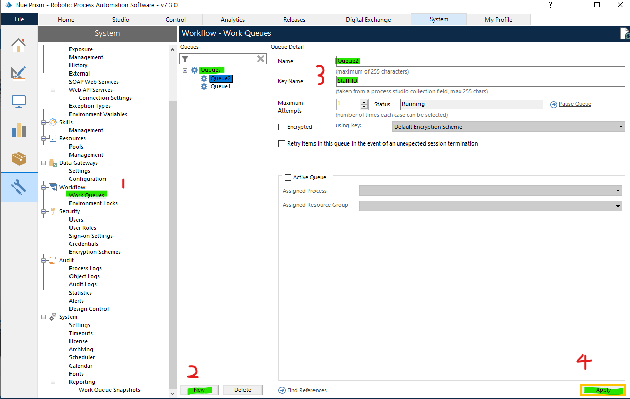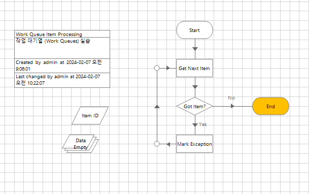 step1.) 새 작업 대기열을 생성하고 구성하며, Work Queue Item Processing 프로세스를 대기열의 항목에 대해 작업하도록 수정