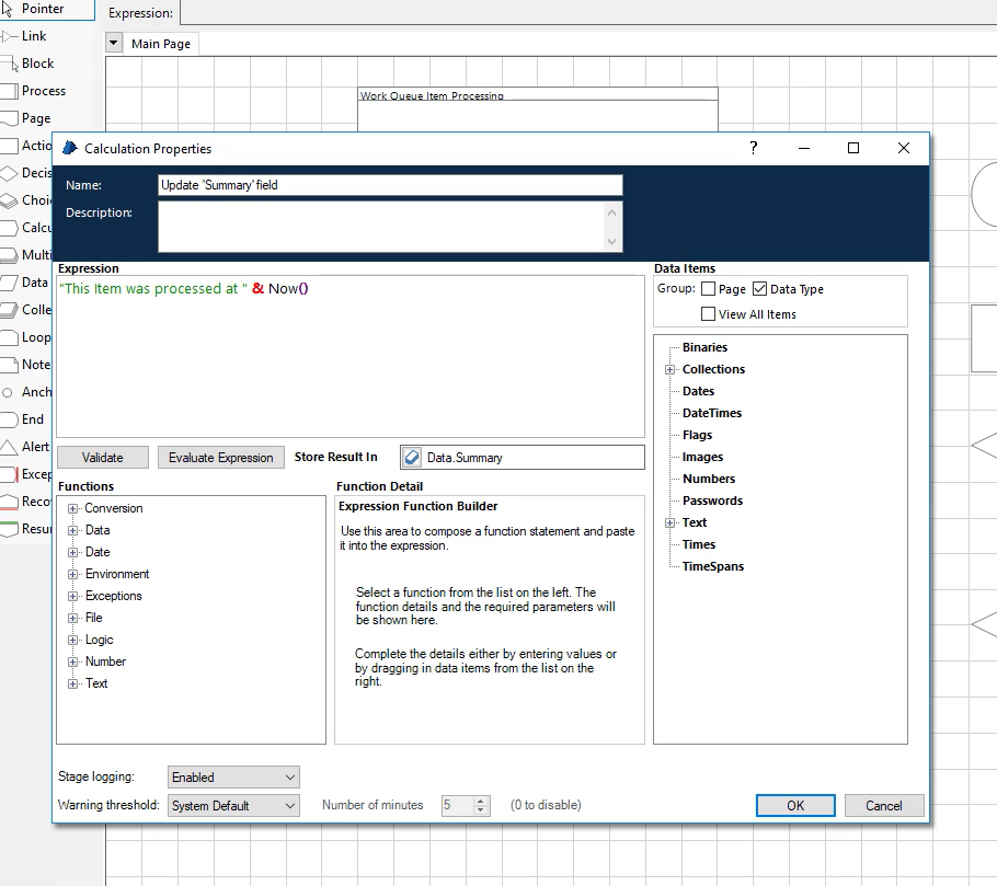 계산 스테이지는 시간 값을 생성하고 컬렉션의 Summary 필드에 저장한다.