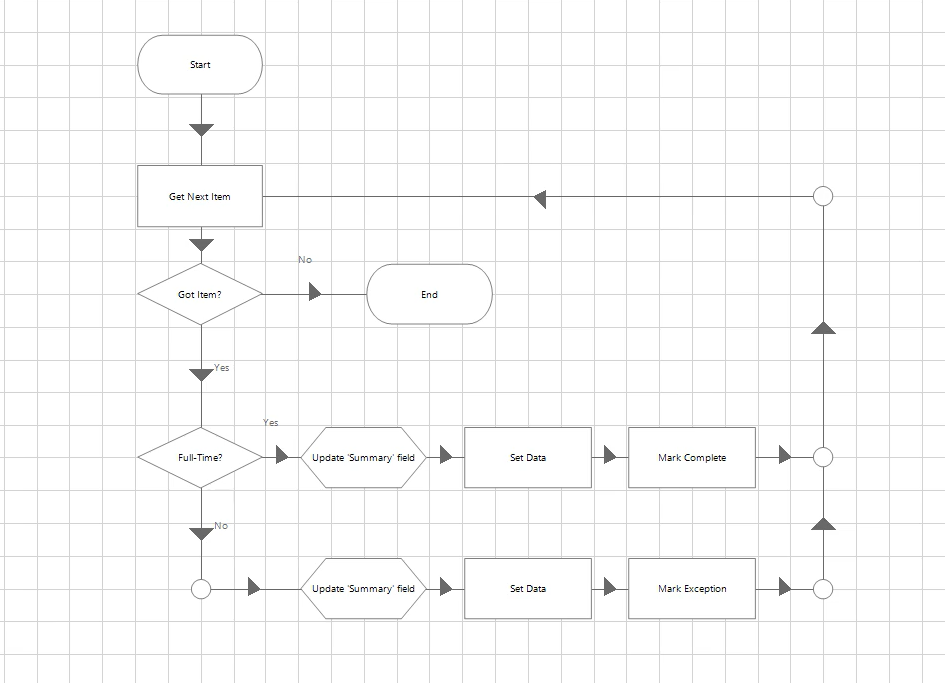 step2.) 결정 스테이지를 만들고, 프로세스에 순환 경로를 만든다.