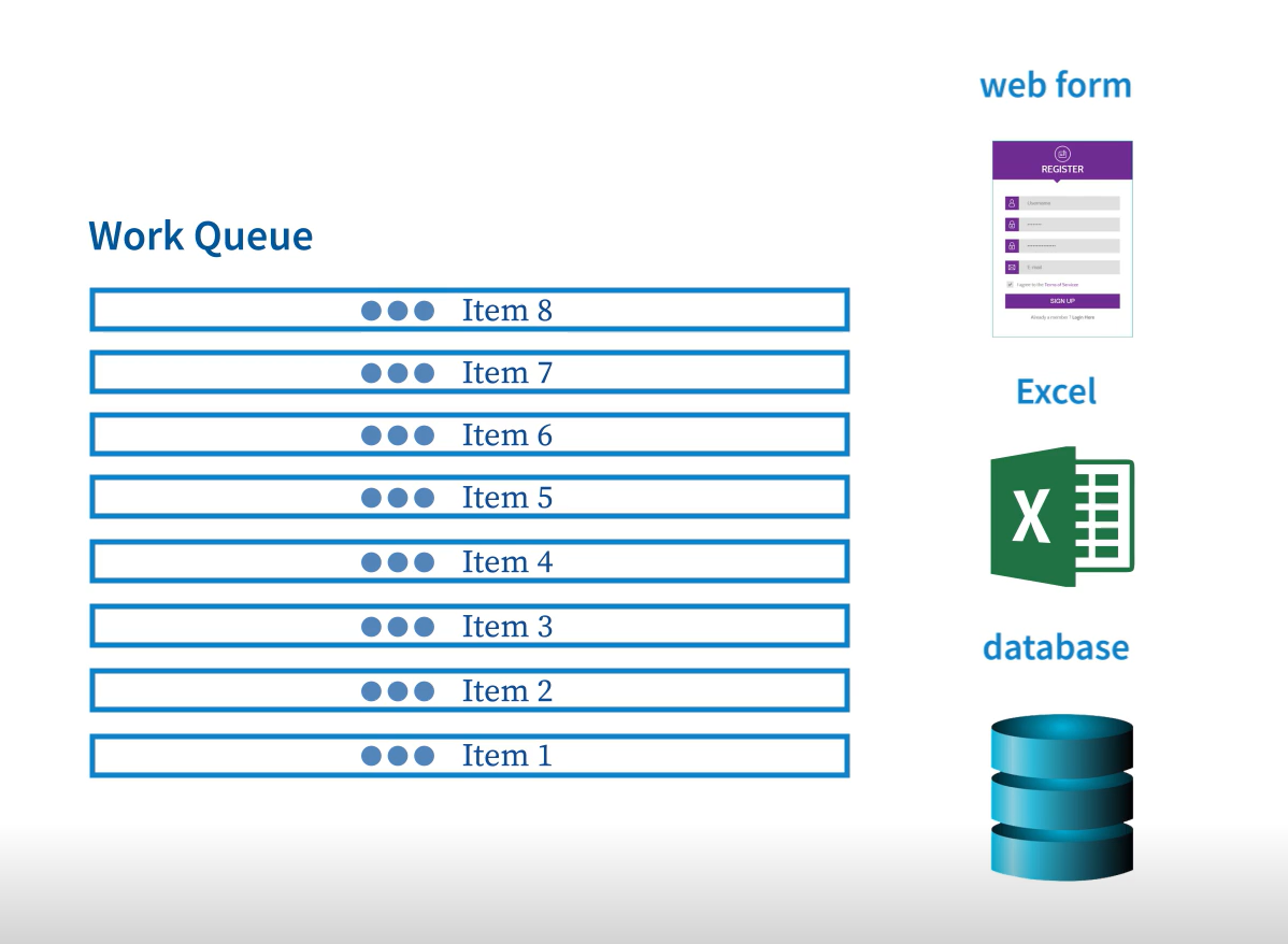 워크로드를 공유하기 위해 여러 대의 디지털 워커가 동일한 작업 대기열에서 동시에 항목을 요청 할 수 있으며, 각 디지털 워커는 처리할 작업 대기열에서 서로 다른 항목을 수신한다.