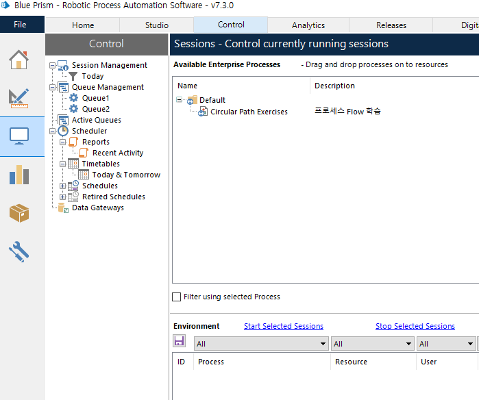 블루 프리즘의 작업대기열 (Work Queues)를 사용하는 것이 항상 권장된다.