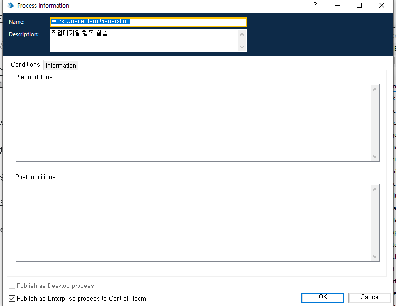 Step.2) Work Queue Item Generation을 위한 세션을 생성하고 실행해서 항목이 있는 작업 대기열 로드