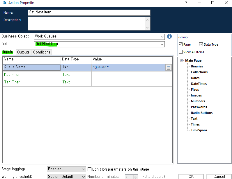 1.1 작업대기열을 설정 후 예외 항목을 최대 두 번 재작업 하도록 하기.