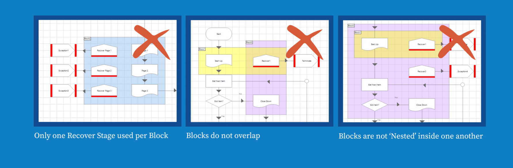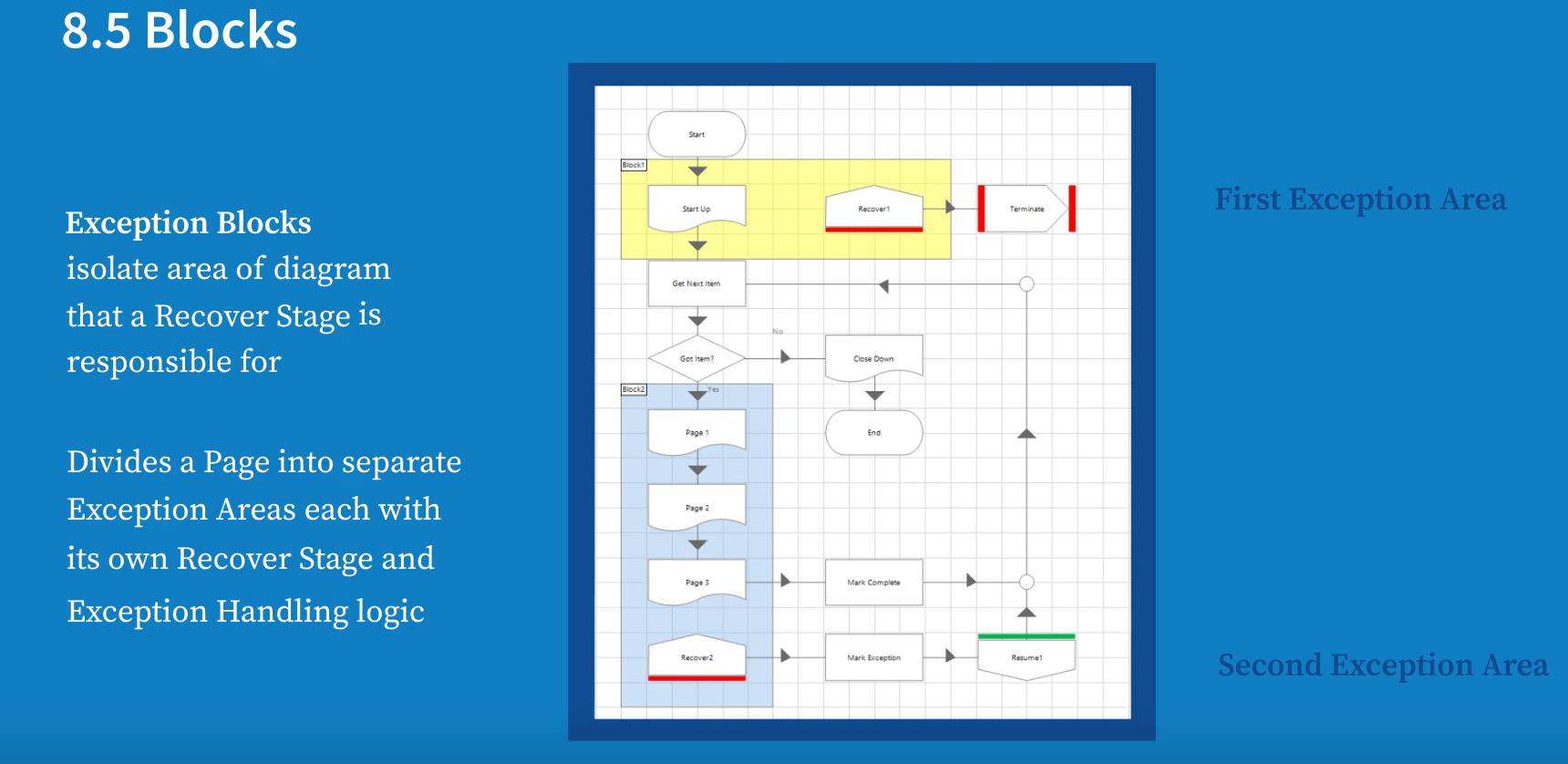 각 예외 영역에는 고유한 복구 스테이지와 예외 처리 논리를 가질 수 있으며, 동일한 블록 내에 있는 스테이지에서 생성된 예외에 대해 책임을 집중할 수 있다.
