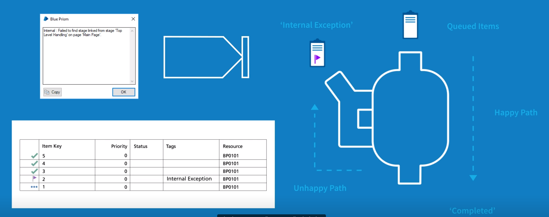 어플리케이션이 예상대로 작동하지 않아서 그것을 블루프리즘이 인식할 때 발생한다.