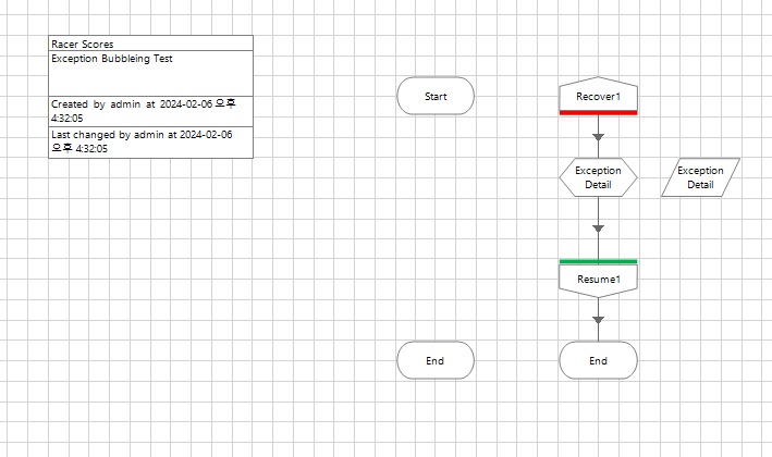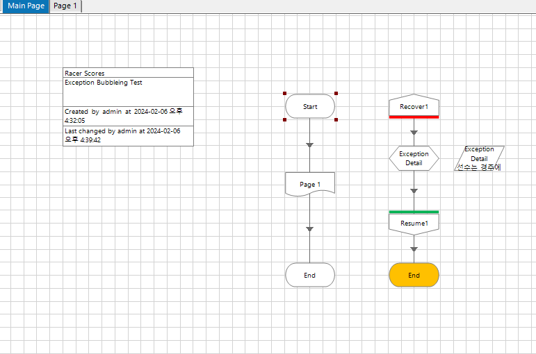 step1.) 복구모드 내에서 결정 스테이지와 새 예외 스테이지를 추가하여 프로세스의 메인 페이지에 도달해도 처리할 수 없는 예외를 다시 발생시키기