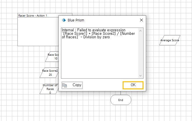 블루 프리즘 솔루션을 설계할 때 예외 탈출경로도 고려해야함.