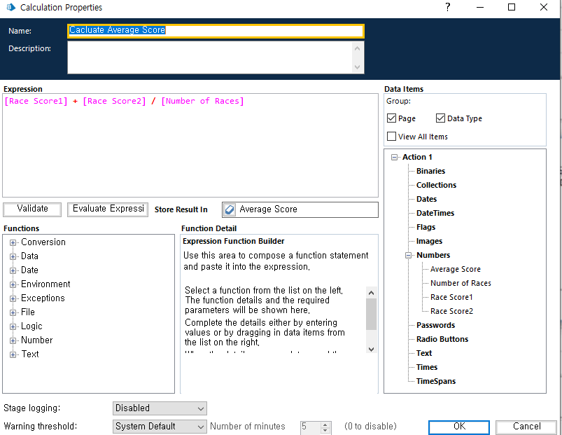 step2.) 데이터 항목 내의 값을 사용하는 계산 논리 생성