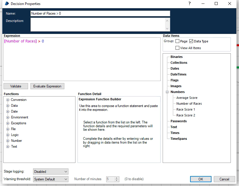 1.2 Number of Races 데이터 항목 값이 0 보다 큰지 확인하는 표현식 만들기