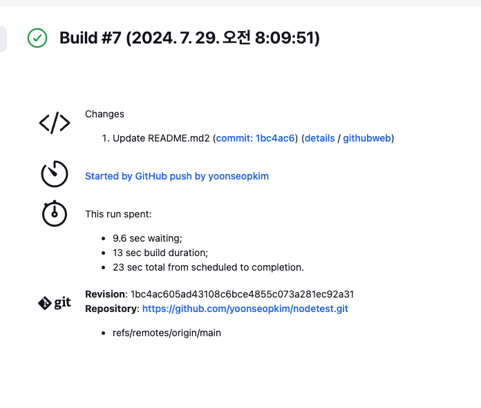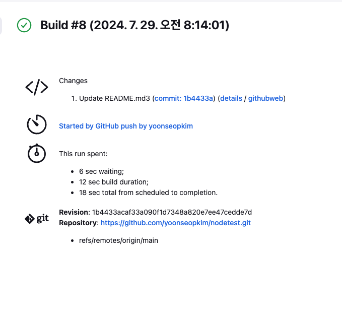 이로서 CI/CD 파이프라인이 성공적으로 구성된 것을 알 수 있다.