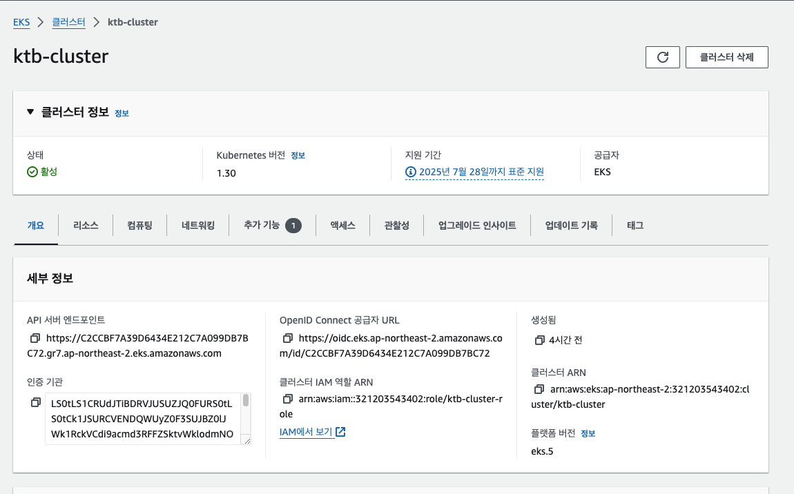 클러스터 추가시 t3.medium 으로 해야 ci/cd 가 진행되도 중간에 멈추지 않는다. micro는 성능 부족