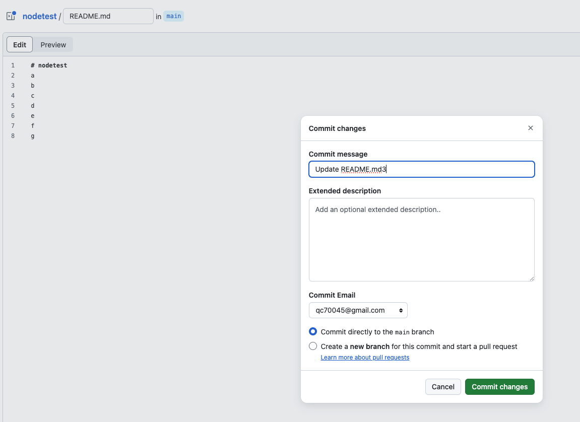 https://github.com/yoonseopkim/nodetest.git 저장소 fork해오기
