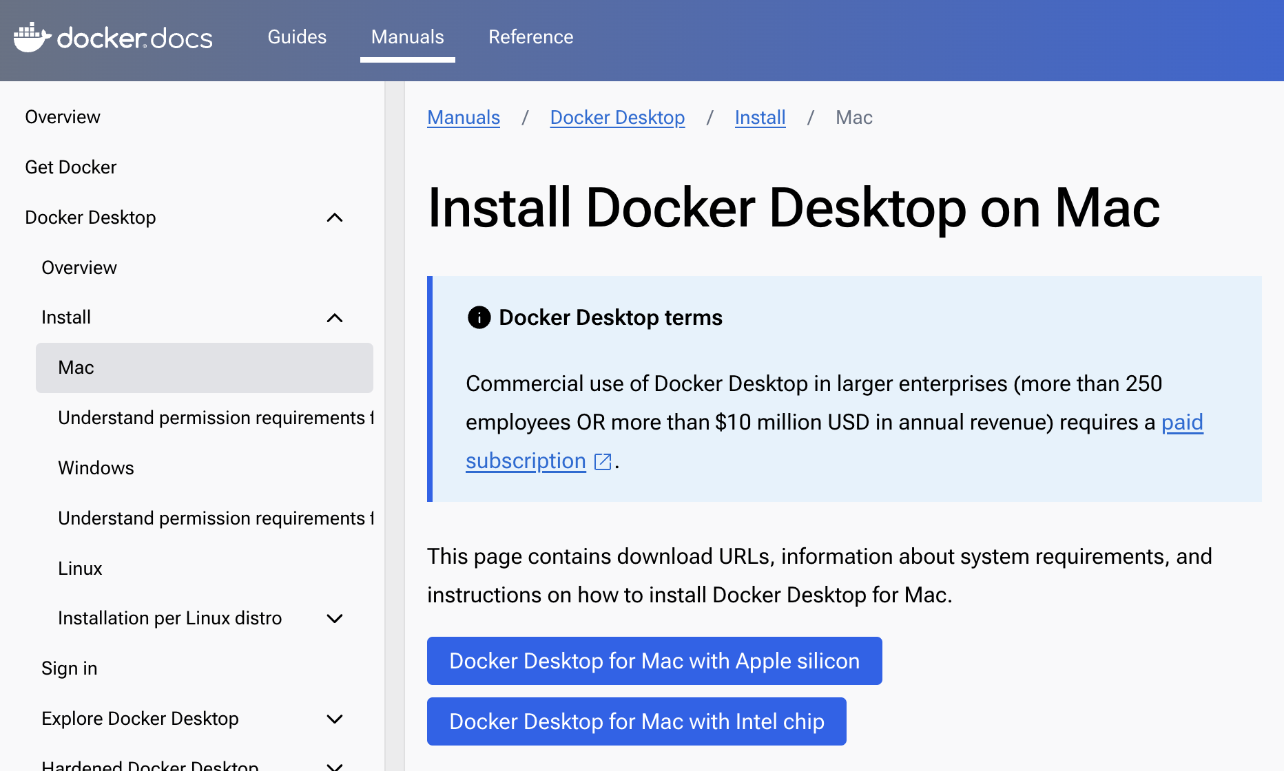 사이트에서 본인의 환경에 맞는 버전의 도커를 설치한다.