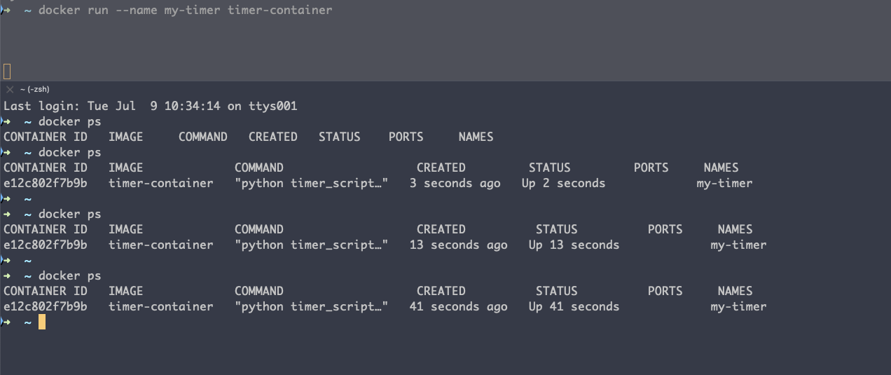 print(f"도커가 실행 중입니다. {i+1}초 동안...")
