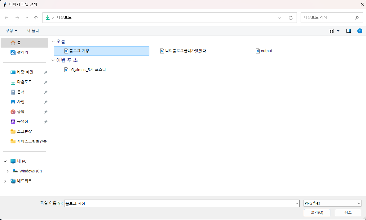 file_path = filedialog.askopenfilename(title="이미지 파일 선택", filetypes=[("PNG files", "*.png"), ("All files", "*.*")])