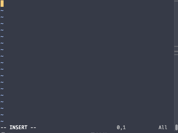 vim 에디터로 접속이 되는데 영어 i를 누르고 편집 모드로 변경, 코드를 작성한다.