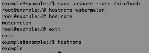 sudo unshare --uts /bin/bash