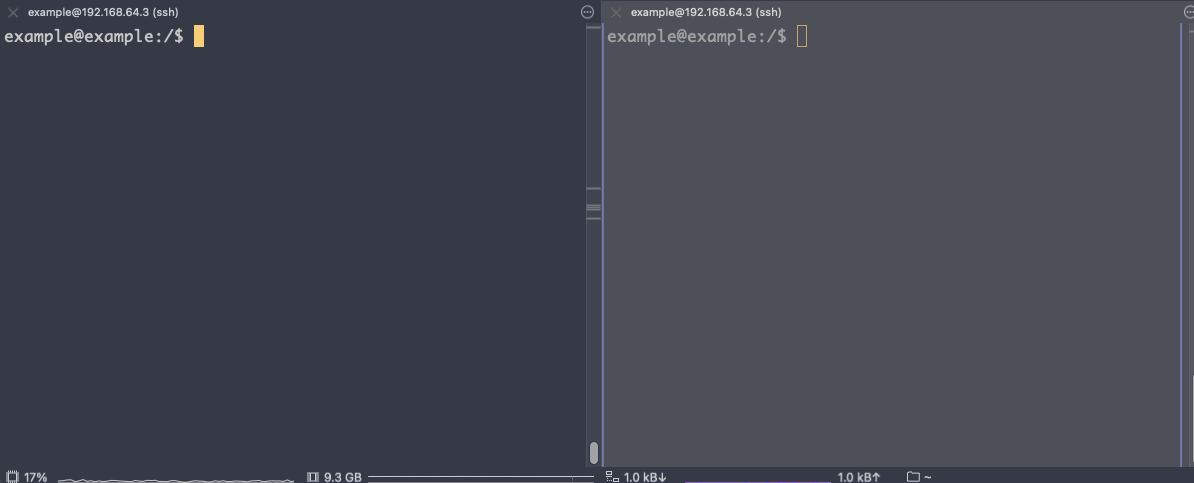 서버와 클라이언트 통신 확인하기 위해 터미널을 분할한다.