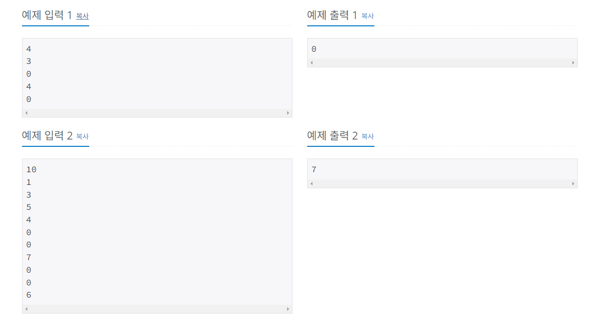 이후 K개의 줄에 정수가 1개씩 주어진다. 정수는 0에서 1,000,000 사이의 값을 가지며, 정수가 "0" 일 경우에는 가장 최근에 쓴 수를 지우고, 아닐 경우 해당 수를 쓴다.