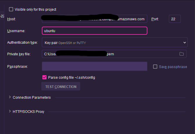 Username 은 운영체제 종류에 따라 기본값 ubuntu 나 ec2 입력