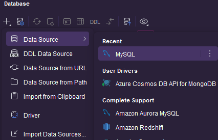 database 검색-data source-MySQL 클릭