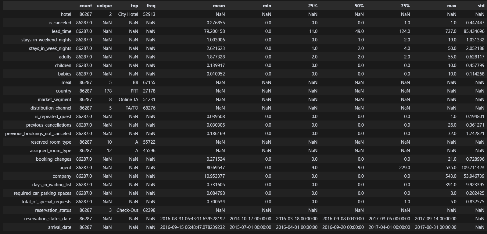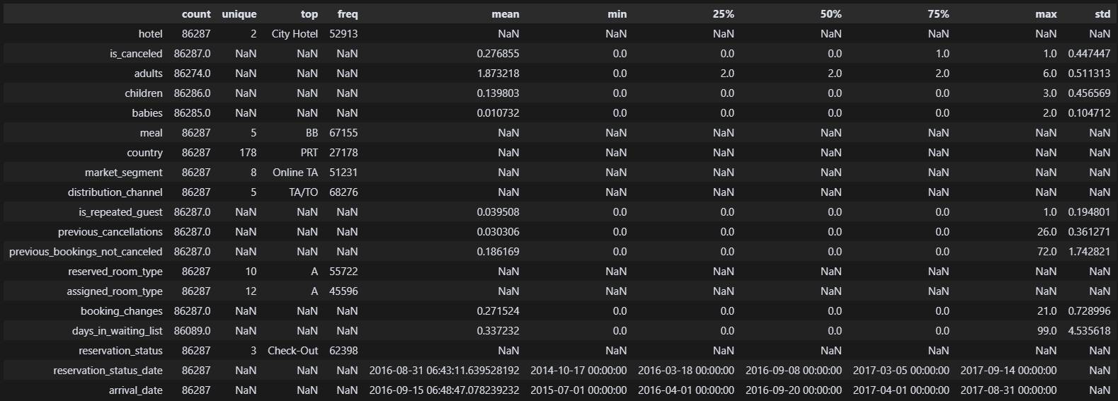 df.drop(columns=['arrival_date_year', 'arrival_date_month', 'arrival_date_week_number', 'arrival_date_day_of_month'], inplace=True)