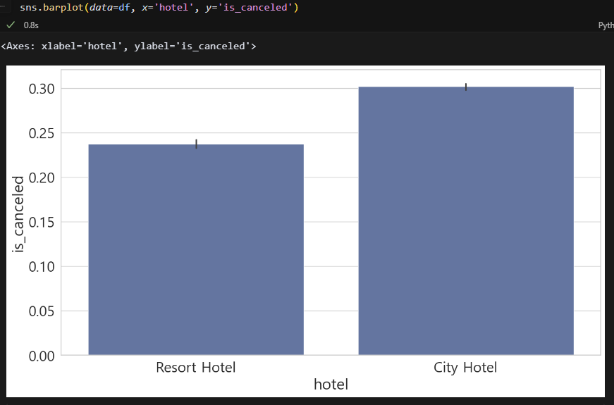 어느 축이든 is_canceled 열이 들어가야 상관관계를 볼 수 있다. 일단 바플롯으로 하나씩 들여다 보자.