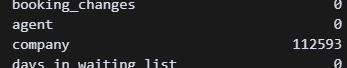 country열도 결측치 처리 완료! 다음은 agent열이다.
