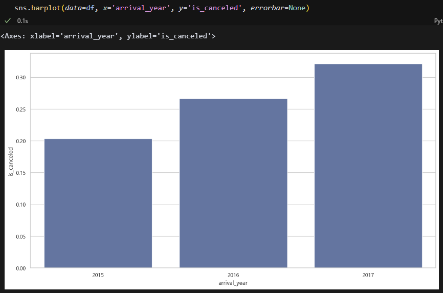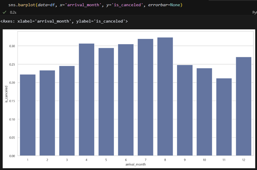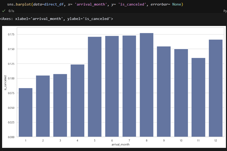 그리고 글을 보면서 궁금한 게 생겼는데요. 연도별로 취소율이 높은 것을 볼 수 있었는데, 그럼 연도에 따른 월별 취소율은 어떻게 되나요? 추측상 동일하게 7-8월에 높으려나? 저는 연도별로 취소율이 높아지게 된 원인을 데이터 분석을 통해 찾아봐야겠네요!