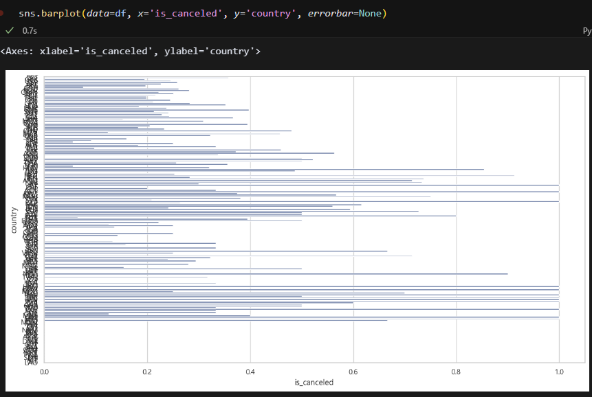 국가별로 비교도 해봤는데, 유독 취소율이 높은 국가가 몇 있다. 너무 많으니까 예약 건수가 많은 상위 몇 개만 추려서 봐야겠다.
