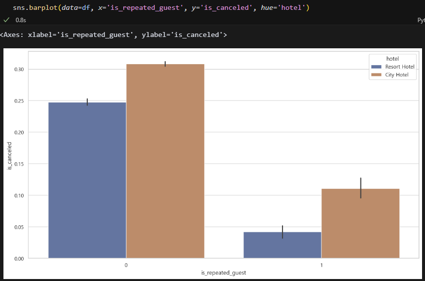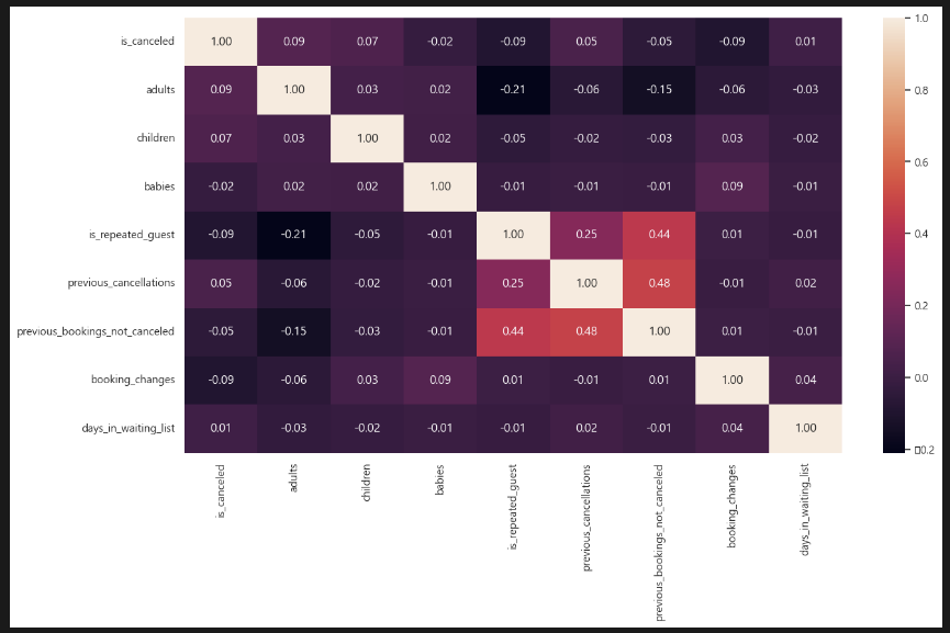 히트맵을 1차적으로 살펴보고, 두 호텔의 취소율을 비교했다.