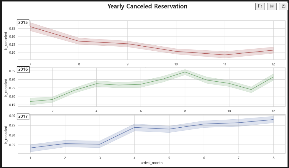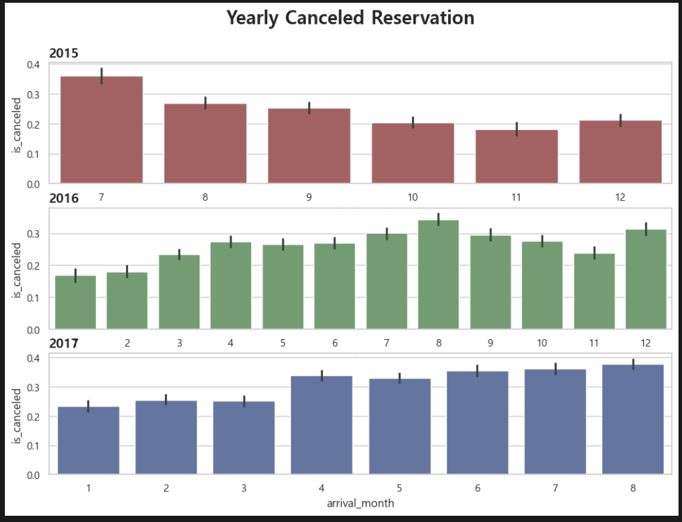 연도별로 나누어 보아도 여름 취소율이 가장 높다.