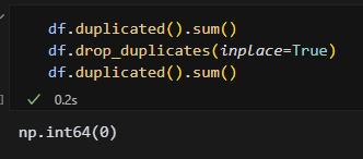 중복값을 드롭하고 재확인했다. 중복값 처리 끝! 필요 없는 데이터는 빨리 날려주고 다음 단계로 넘어가자!