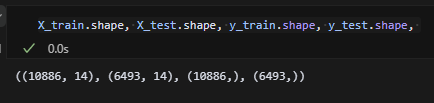 train셋과 test셋의 차원을 확인했다. 14차원이 둘 다 동일하다.