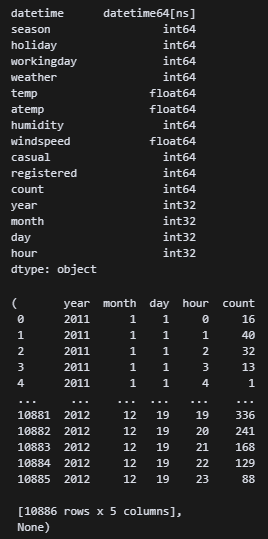 df_train[['year', 'month', 'day', 'hour', 'count']], print(df_train.dtypes)