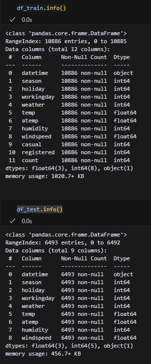 dtype도 모두 동일하다. null값도 없다. 근데 두 파일 모두 날짜가 오브젝트니 datetime 타입으로 변경해야겠다.